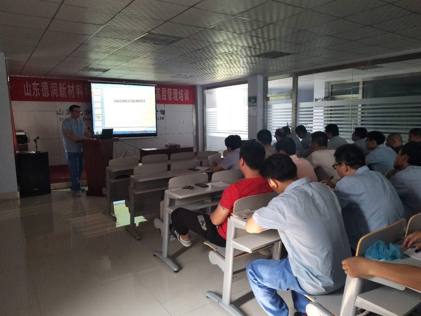 為貫徹落實職業(yè)技能提升培訓工作,全面提升公司工藝技術、設備操作人員專業(yè)技能,加快高技能人才隊伍建設,公司決定,自2018年7月7日起開展定期(每周六上午8:30-11:30)專業(yè)技能培訓。參加培訓人員含生產(chǎn)技術部全體員工、各車間班組長及以上崗位人員。以下組圖為7月7日培訓現(xiàn)場。